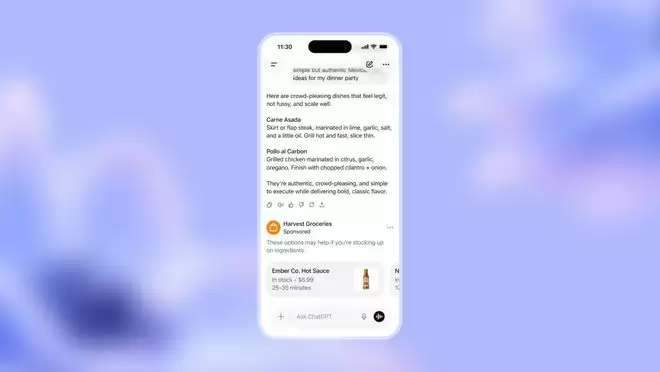 在 OpenAI 展示的一个典型场景中,当用户询问墨西哥晚餐的烹饪建议时,ChatGPT 在给出详细菜谱后,会在对话框底部展示一个来自赞助商的提示,询问用户是否需要一键购买所需的食材。这种「意图触发」的机制,试图让广告从一种干扰性的噪音,转变为一种能够直接解决问题的服务。