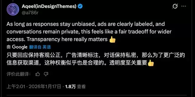 在公告评论区也呈现出明显的两极分化:很多人对这一前景表示悲观,但更多专业用户也对此表示理解:只要相关的算法足够透明,并且广告清晰标注,并非不能接受。