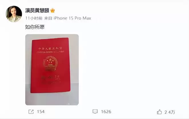 黄慧颐:如你所愿(晒出昔日结婚登记的证书)!