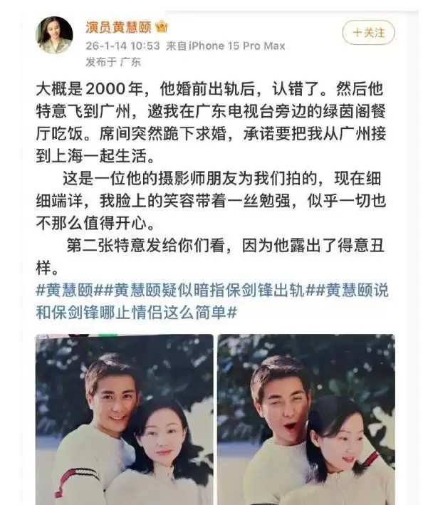 如今她在个人账号分享日常,一个人安静做事业,20年里,大家见过黄慧颐说过保剑锋一句坏话吗?
