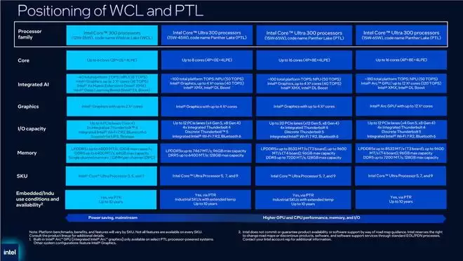 ▲ IT之家注:上图中部分内容存在问题,例如“Wildcat Lake”处理器的LPDDR5x内存频率支持与SKU命名格式