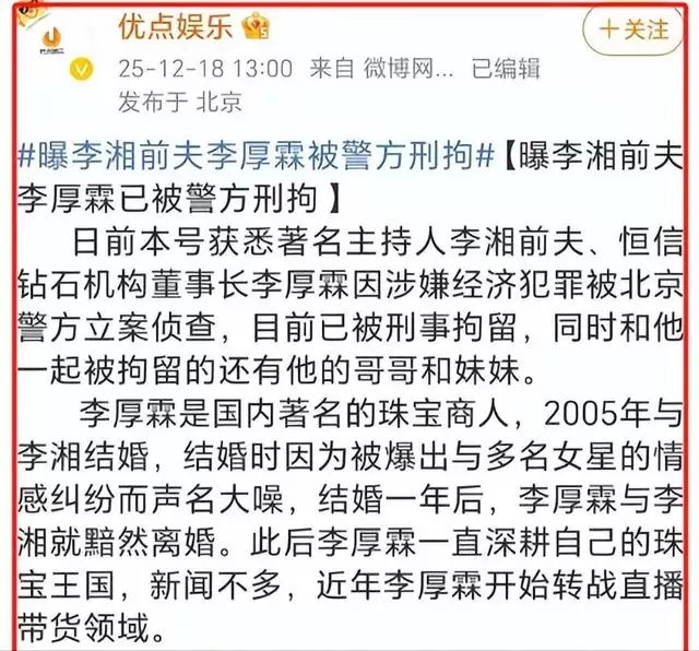 不过,去年12月,李厚霖被曝因涉嫌经济犯罪被立案侦查,目前已被警方刑拘。只能说,当时李湘离开对方的选择是正确的。