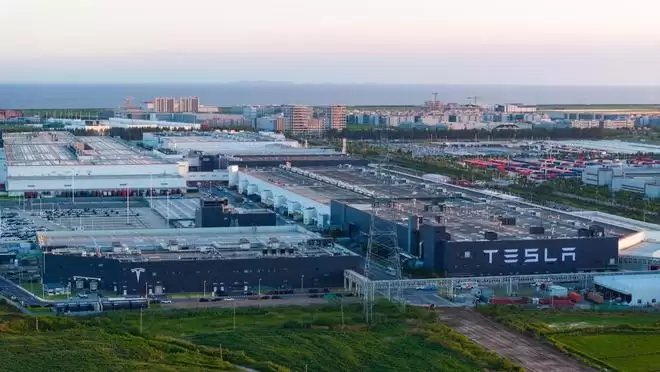 2025年8月18日,上海,航拍上海临港特斯拉超级工厂。