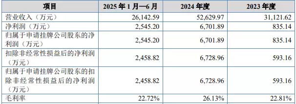 财务数据印证了企业的成长韧性。2023年至2024年上半年,普诺威分别实现营业收入3.11亿元、5.26亿元和2.61亿元。两年间,营收规模增幅超过69%,其中2024年更是突破5亿元大关。净利润表现则更为突出,同期分别达到835.14万元、6701.89万元和2545.20万元。2024年净利润同比激增近7倍,显示出强劲的盈利修复能力和成本控制水平。