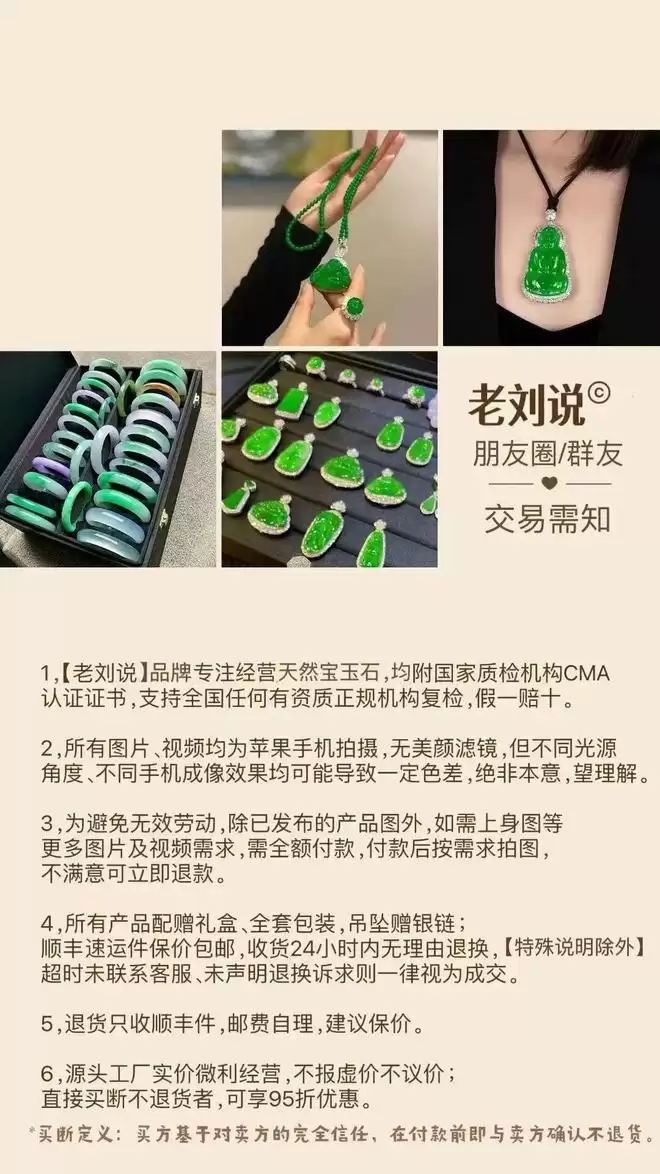 老刘大家应该都知道了,我的老朋友,我的翡翠都是老刘那入的,也推了五年了,至今几乎零差评。