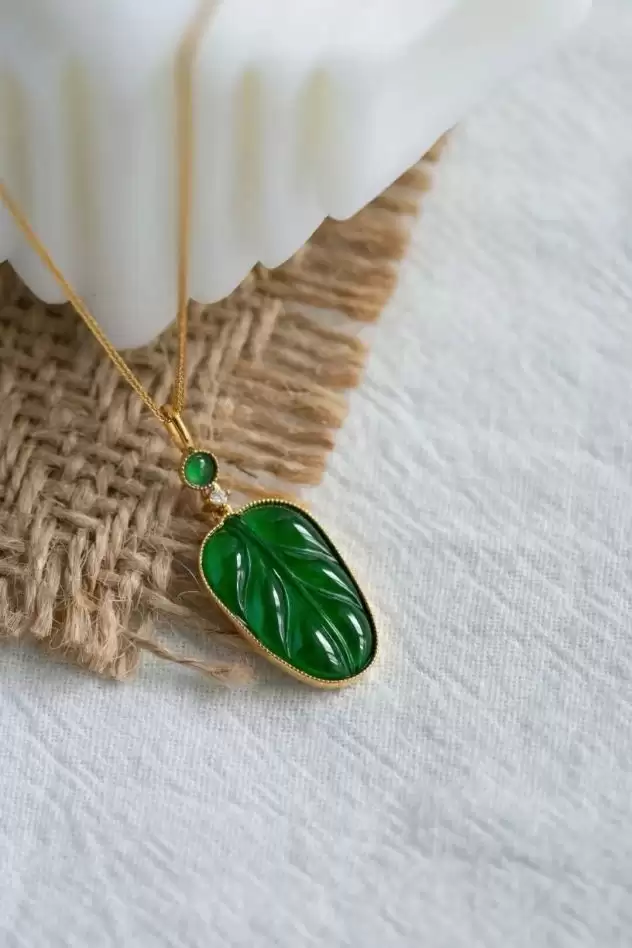 4、冰种辣绿叶子项链