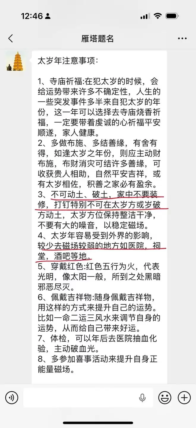 于是今年赶上我爸妈冲太岁,我元旦路过西安大雁塔下的大慈恩寺,就立马给二位都请了化太岁的本命佛。算我未雨绸缪尽孝心了,求个心安。随后还给我发了注意事项。