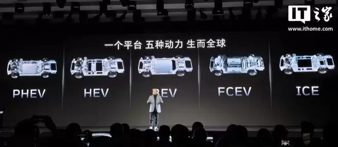 值得注意的是,归元平台提出了“一车多动力”的模块化解决方案,能够实现不同动力形式的模块化组合与按需定制。平台同时兼容PHEV插电混动系统、HEV油电混动系统、BEV纯电动系统、FCEV氢燃料系统以及ICE高效燃油系统这五大动力形式,真正实现了“一套架构、全域兼容”,旨在覆盖全球多样化的能源格局与复杂用车场景。