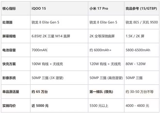 另外为了让大家看清iQOO 15在当前市场的竞争力,我整理了这份核心参数对比表: