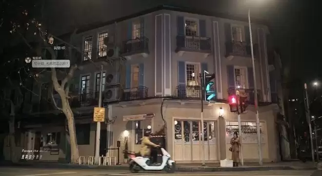 这里是胡羞(卢昱晓饰)发短信回绝筑翎offer的路口,背景是上海音乐学院附近的网红餐厅gubigubi。
