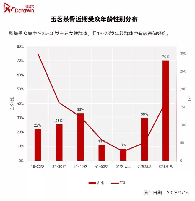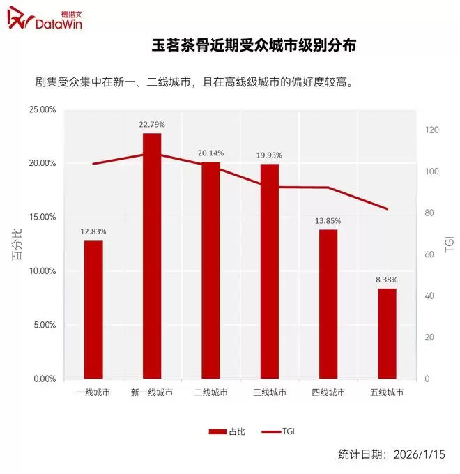这种“硬核文化”与“年轻审美”的结合,成功打破了年龄与地域的壁垒。 从受众画像来看,德塔文数据显示,该剧18-23岁受众TGI高达299.8,年轻群体对这种“有颜又有料”的新国风表现出极高热情;同时,在一线及新一线城市的受众TGI也均超过100。