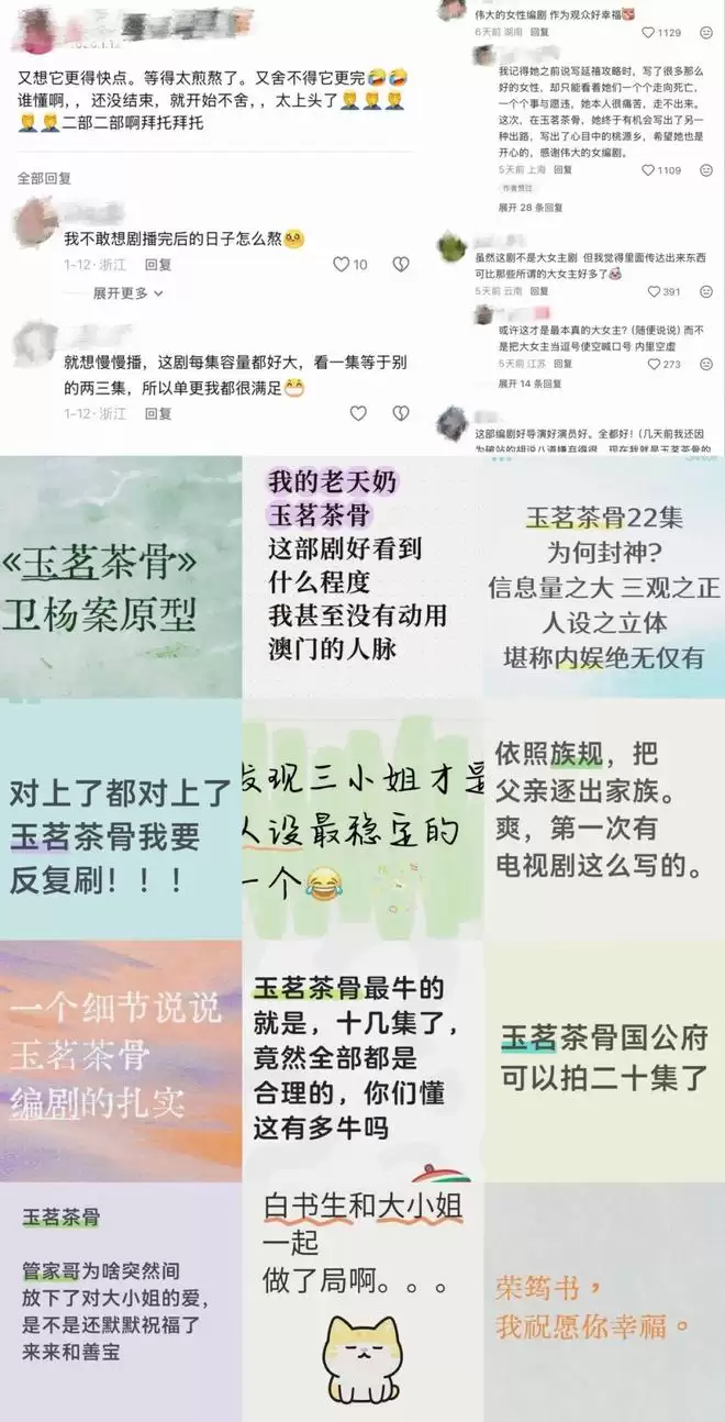 剧集扎实的制作也赢得了观众的“自来水”式安利。在社交媒体上,“我的老天奶”、“为何封神”、“信息量之大、三观之正”成为了高频评价。观众惊叹于编剧的功力,直呼“看一集等于别人的两三集”、“细节竟然全部对上了”,并盛赞这是“伟大的女性编剧”带来的“最本真的大女主”,而非“把大女主当逗号使的空喊口号”。这种高粘性的追剧体验,让不少观众发出了“不敢想剧播完后的日子怎么熬”的感慨,足见好内容在观众心中引发的深刻共鸣。