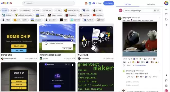 WebSim是一款 AI 网页/交互应用生成器:你用自然语言描述一个 或小游戏,它会直接生成一个可运行的 Web 页面,并且支持持续迭代修改、分享链接传播。