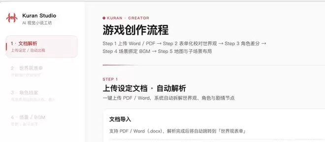 目前已可以体验上传word/pdf“一键”生成AI叙事类游戏,AVG和RPG游戏还需要邀请码。
