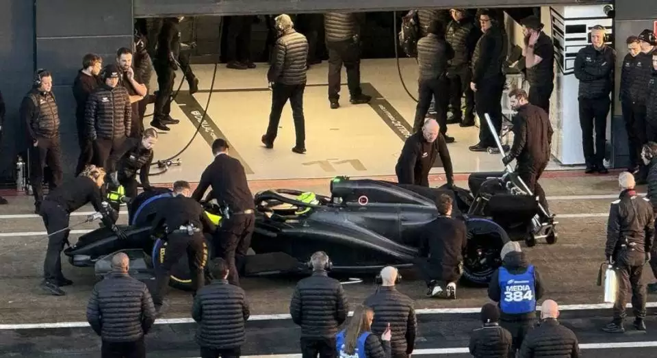 为严守新车设计机密,车队采取了多重保密措施:所有非核心人员手机摄像头被贴纸封锁,车手周冠宇与最新发布的影像均经过重度模糊处理。这辆尚未命名的赛车以全黑涂装亮相,仅在2月8日美国超级碗电视广告中才会揭晓最终配色方案。尽管如此,车库对面建筑的围观者仍捕捉到关键细节——侧箱采用宽扁式进气口设计,后部运用激进的下洗气流技术,通过将气流导向尾翼下方与扩散器区域,弥补新规取消横梁尾翼导致的车尾下压力损失,这一思路与红牛系车队近期公布的设计方案不谋而合。