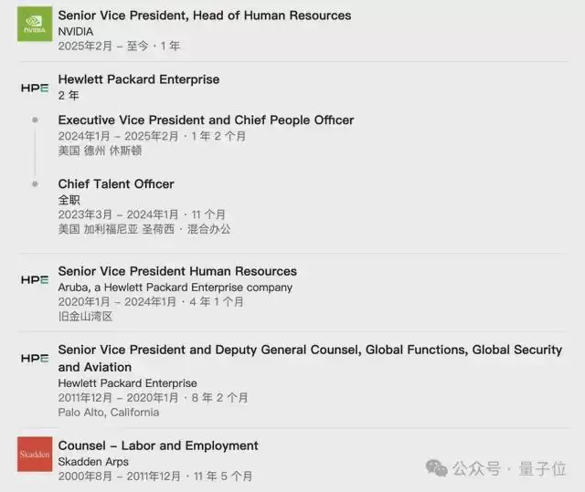 在加入英伟达之前,她在慧与科技(HPE)任职超过13年,先后负责人力资源与人才管理相关事务,最终做到执行副总裁兼首席人才官。