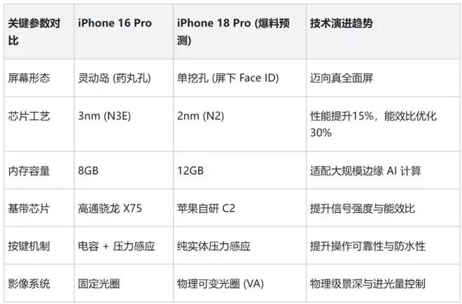 众所周知,iPhone18 Pro 系列预计将成为苹果近年来硬件跨度最大的一次更迭,其核心变革集中在以下四点。