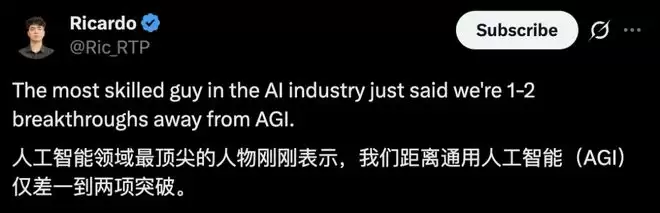 他认为,5年之内,或许仍需1–2项重大技术突破,我们就可能跨越通往AGI的障碍。
