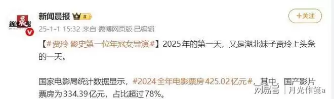但却是24年的中国电影年度票房冠军,这让贾玲一跃成为中国影史首位年冠女导演。
