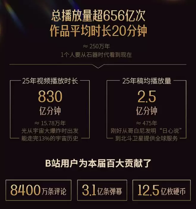 这种选拔标准反映在消费数据上,最直观的表现是——仅2025年,本届百大们作品的用户观看时长,便达到了非常吓人的830亿分钟,换算成年,大约是18万年。