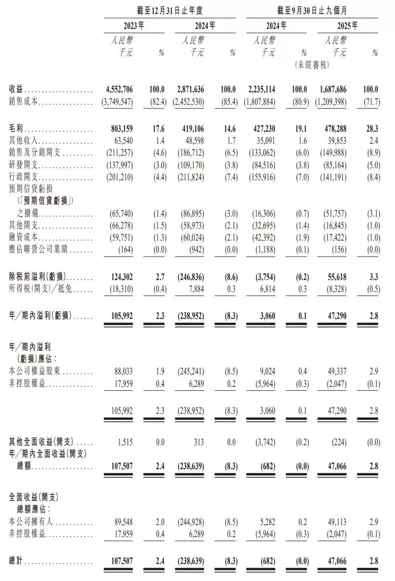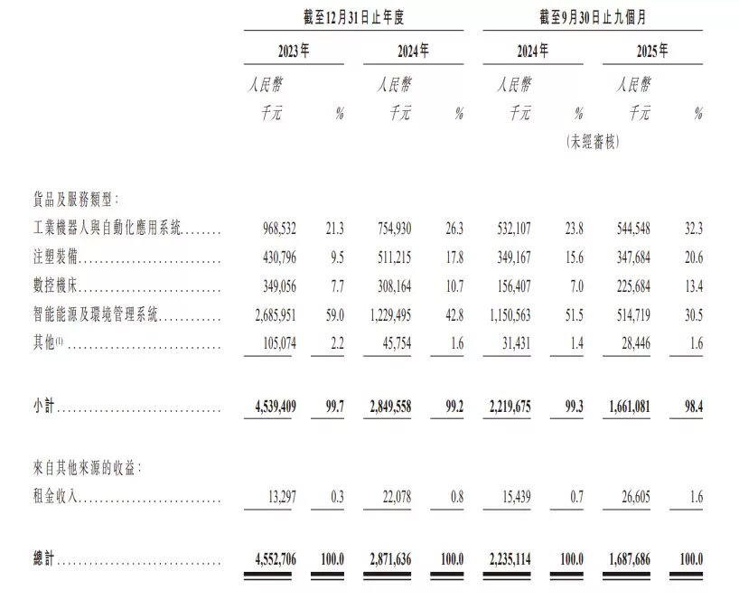 报告期内(2024年至2025年第三季度),拓斯达的营业收入分别为45.53亿元、28.72亿元及16.88亿元。