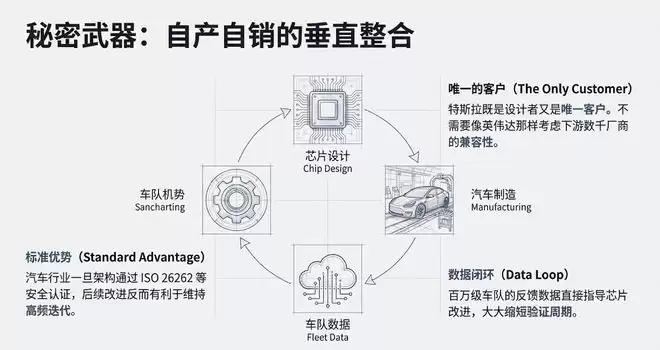 特斯拉既是芯片设计者,又是唯一的客户。它不需要像英伟达那样考虑成千上万个下游厂商的兼容性,而且还可以通过现有的百万级车队反馈数据,这种“自产自销”模式大大缩短了验证和适配周期。
