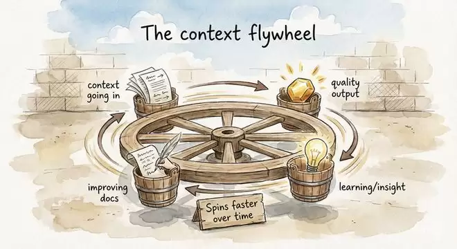 这就是飞轮:好的语境 → 更好的输出 → 学习哪些语境重要 → 改进语境文档 → 重复。