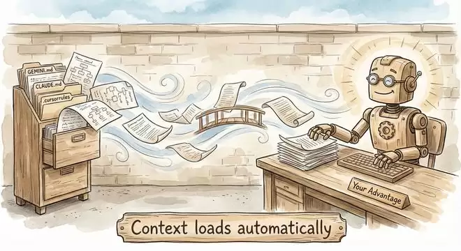 现在所有主要的AI编码工具都支持持久化的语境文件。你创建一次,放进项目里,它们就会自动加载到每次对话中。