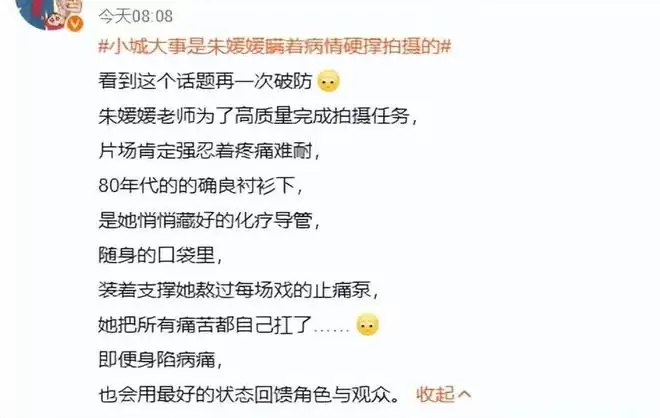 剧组的人,无一知晓朱媛媛真实的身体状况,只感觉她瘦得厉害。
