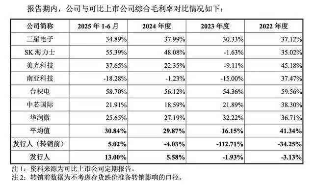 长鑫科技与半导体行业可比上市公司毛利率对比。图/招股书