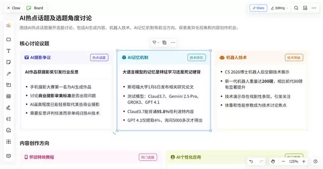 ▲ 网页端飞书 AI 生成的画板,图为编辑页面