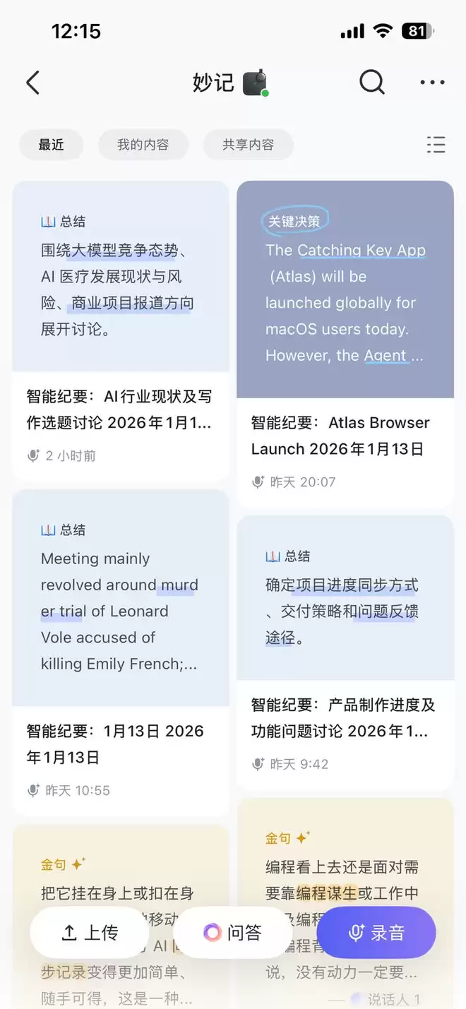 我们在用这个 AI 录音硬件时,让它跟我们一起开了几天的选题会,感受到了一些不一样的变化。