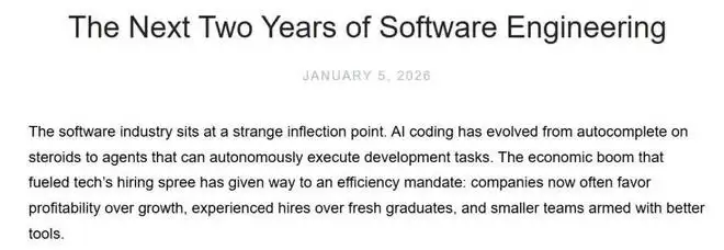 这五个问题都指向同一件事,软件工程正在从写代码的职业,转变为驾驭复杂系统与 AI 的职业。未来不是单一答案,而是多种路径并存,谁能适应变化,谁就能留下来。