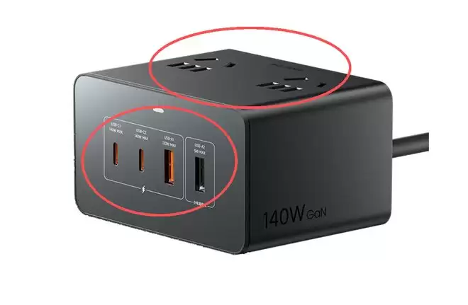 值得一提的是,两个USB-C口都支持140W PD3.1快充,也就是说,随便插哪个C口,都能享受疾速充电体验。当然,USB-A1口也支持120W私有协议快充,A2口则是专为耳机、手表这类小电流设备设计的,能避免过度充电损伤电池。安全方面更是无需多言,外壳采用了高温阻燃材料,还内置了过载保护和双动式安全门。就算家里有小孩或宠物,也不用担心误碰插座孔。