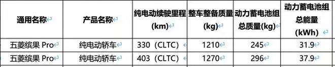 1月19日,IT之家获悉,工信部公布了五菱缤果Pro的电池及续航相关信息。该车在电池配置上提供了两种选择,分别是31.9千瓦时和37.9千瓦时的电池组,对应的CLTC续航里程分别达到330公里和403公里。