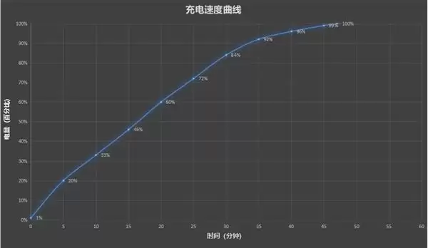 5分钟充入20%,10分钟充入33%,20分钟充入60%,半小时充入84%。随时补电的速度相当强大。