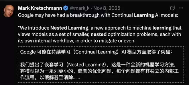 特别是嵌套学习,让外界认为谷歌在持续学习上已取得突破。