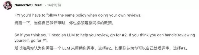 政策 B 属于宽松型,允许使用模型辅助评审,但会对使用大模型评审的方式做出明确限制: