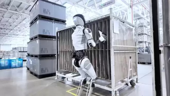 其次,我们还有针对服务场景设计的轮式机器人星动Q5。它的外形设计得比较纤细、优美,同样具备七自由度的双臂和五指灵巧手,可以灵活地完成下蹲拾取物品等精细操作。