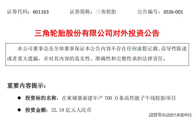三角轮胎股份有限公司近日宣布,将投资32.19亿元人民币在柬埔寨启动一项重大投资项目,目标是新建一条年产700万条高性能子午线轮胎的生产线,从而深化其全球化战略布局。此举不仅标志着公司在制造、研发与市场拓展方面迈出关键一步,更被视为提升品牌国际影响力与核心竞争力的重要举措。