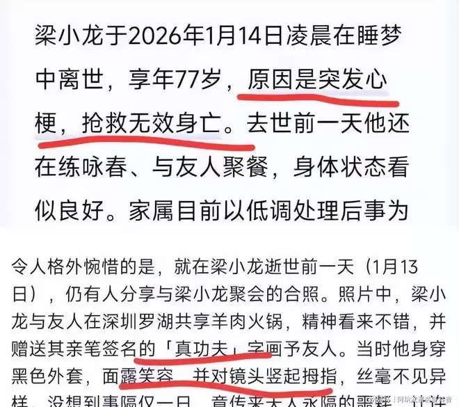 也正因如此,梁小龙的去世消息才更让人难以接受。