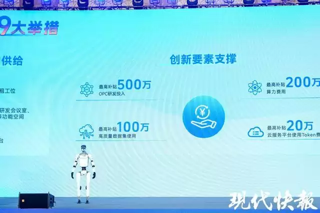 为培育人工智能产业创新力量,建邺区专门出台了《支持OPC社区建设若干措施》,构建OPC社区专属权益体系。该体系涵盖专业化空间供给、创新要素支撑、人才创新创业、项目产业化等九大举措,为OPC提供最高2年办公租金全免、研发投入补贴500万元、算力费用最高补贴200万元、高质量数据集使用最高补贴100万元、产品产业化最高奖补500万元、OPC产品“首试首用首购”最高补贴10万元等全方位支持,从创意孵化到创业落地为OPC创业者全程护航。
