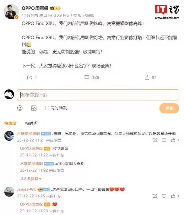 月1日,OPPO Find系列负责人卓世杰通过个人微博,深度解读移动影像“长焦自由”,正式公布Find X9 Ultra内置+外置双增距镜影像方案;同期OPPO Find X9s Pro亮出Ultr