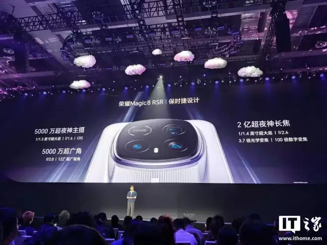 其中,新鲜登场的 Magic8 RSR 搭载的是 2 亿超夜神长焦,拥有 1/1.4 英寸大底、f/2.6 超大光圈、3.7 倍光学变焦。