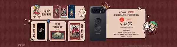同时,自1月23日起,荣耀将在北京、上海等全国百座城市陆续落地荣耀500 Pro MOLLY 20周年联名主题店及线下快闪活动,为潮玩爱好者带来沉浸式体验潮玩IP的机会。