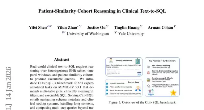 这项由华盛顿大学和耶鲁大学联合开展的研究发表于2026年,论文编号为arXiv:2601.09876v1。研究团队针对医疗数据库查询这一关键问题,构建了一个名为CLINSQL的全新评估体系,专门测试人工智能模型在处理复杂医疗数据时的真实能力。