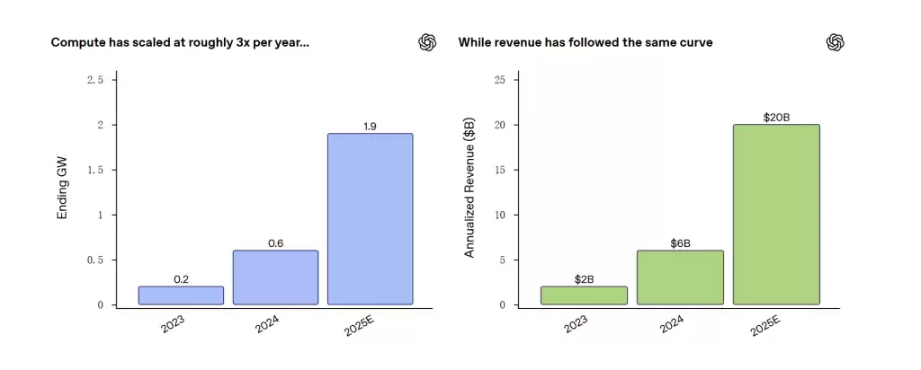 OpenAI近日公布了2025年的业绩单,年化收入突破200亿美元,而算力规模在过去三年间激增近十倍。