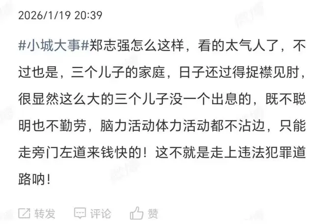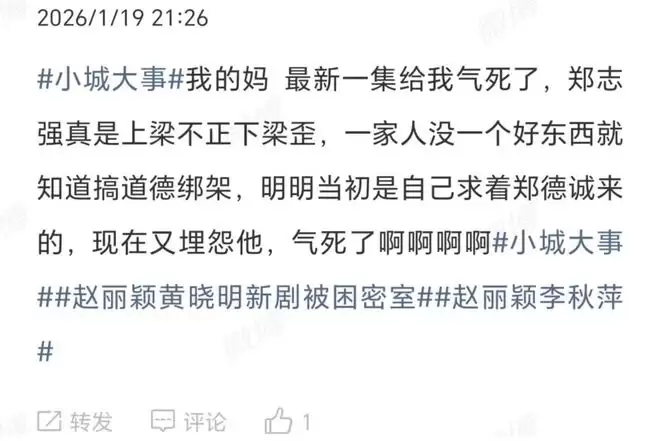 郑志强的父亲郑德生,在《小城大事》以前的剧情中,他乱倒垃圾被李秋萍公示后主动承认错误,曾经赢得了观众的同情和好感。