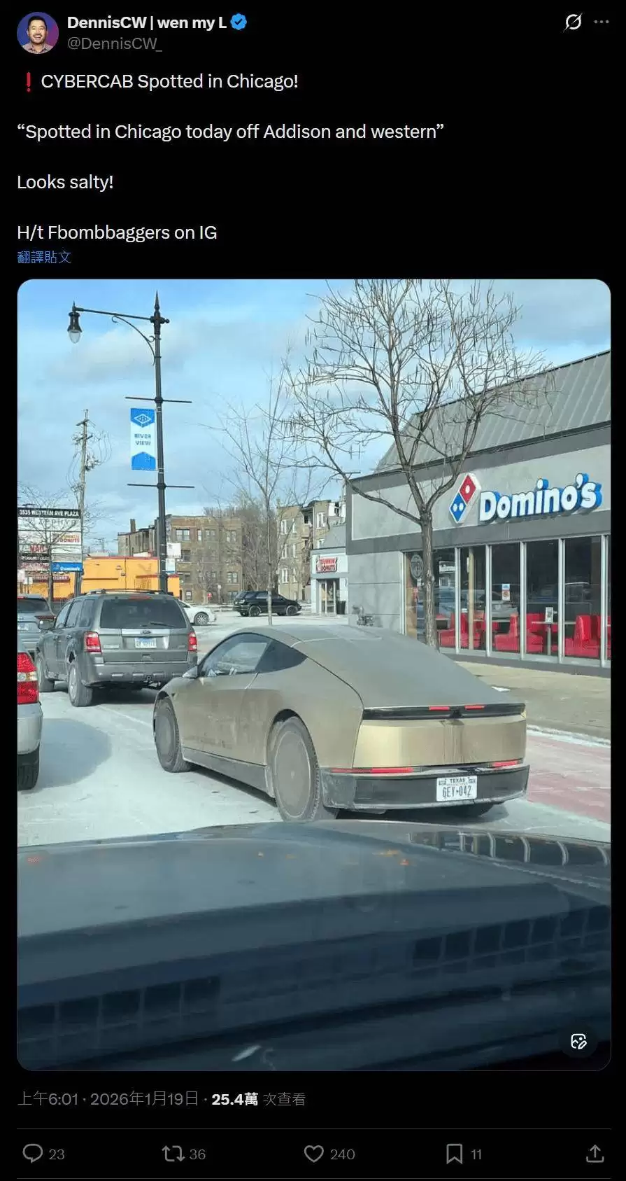 芝加哥街头直击特斯拉Cybercab,车尾疑配自动清洁摄像头
