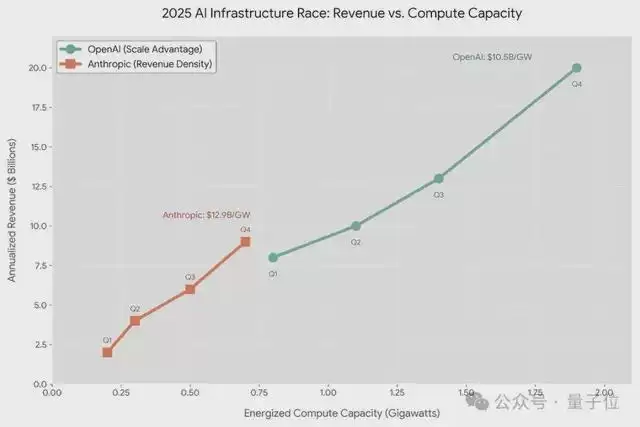 光看一家你可能没概念,那如果把OpenAI和它的“老对手”(Claude母公司)放一起呢: